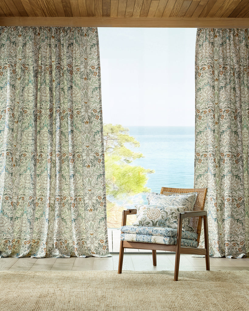 Verleihen Sie Ihrem Zuhause einen Hauch von britischem Arts-and-Crafts-Stil – mit einem Vorhangstoff, der Geschichte, Stil und Komfort in sich vereint.