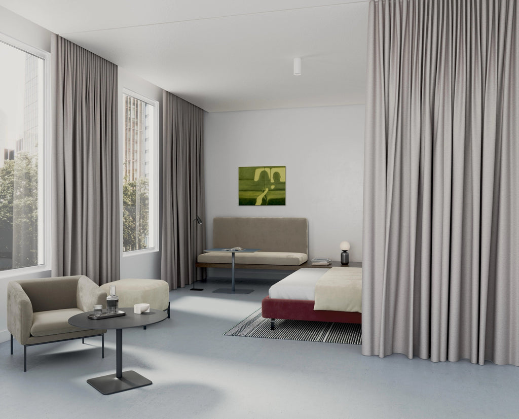 Dank der feinen Webstruktur sorgt der Stoff nicht nur für eine stilvolle Atmosphäre, sondern hilft auch dabei, den Energieverbrauch durch bessere Raumtemperaturregulierung zu senken.