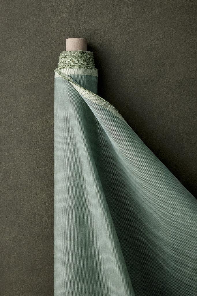 Der charakteristische Moiré-Effekt verleiht dem Stoff eine faszinierende Tiefenwirkung – ein sanftes Spiel von Licht und Schatten, das bei jeder Bewegung lebendig wird. Diese subtile Dynamik macht Moiré seit Jahrhunderten zu einem begehrten Dekorationsstoff – jetzt neu interpretiert für moderne und klassische Interieurs gleichermaßen.